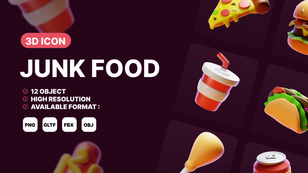 The 3D "Junk Food" icon showcases the simple pleasures of fast food that we all occasionally indulge in. ππππ