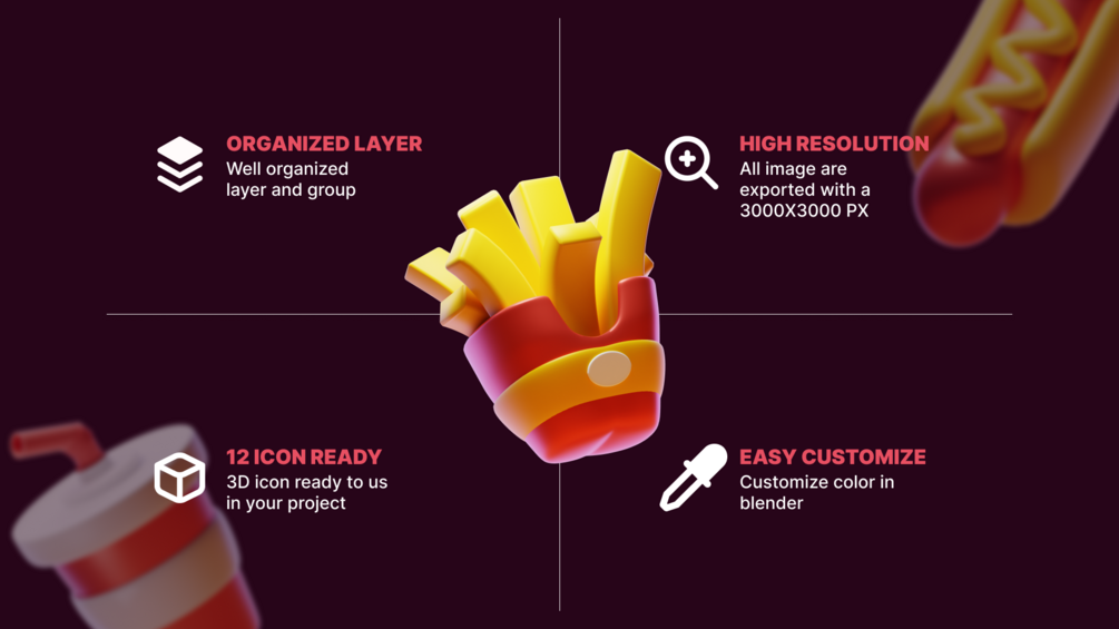This 3D icon is a representation of delicious and tempting fast food. It immerses you in a world of irresistible flavors, albeit temporarily satisfying.